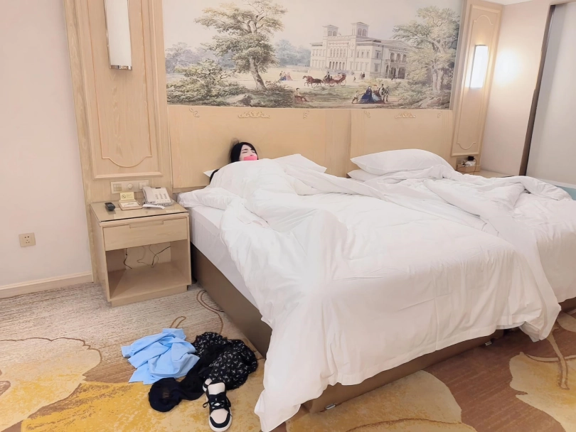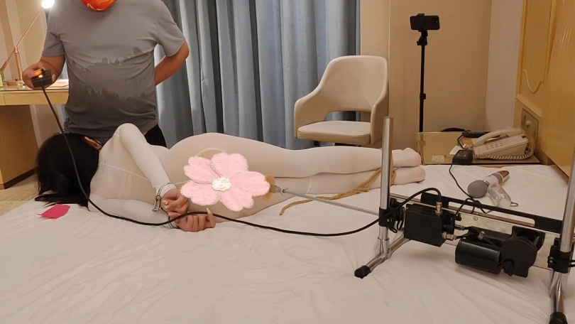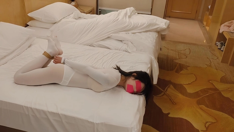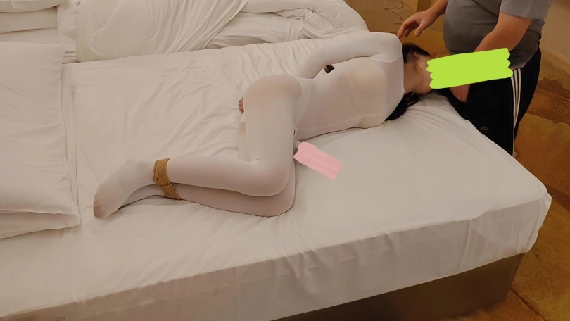 继之前打麻将输要钱并且欠钱的小美女之后,他的牌友由于给她拍下了不雅照片作为威胁,现在的她只能对她的牌友唯命是从,麻将机把她捆绑完之后,牌友便出去买了一套他梦寐以求的白丝全包丝袜回来,命令她穿上陪他睡一晚上,小美女也只能乖乖的穿上躺倒床上去,可是牌友那经得住这些诱惑,马上回去搬来了各种大型设备玩具,准备再一次深度调教。
