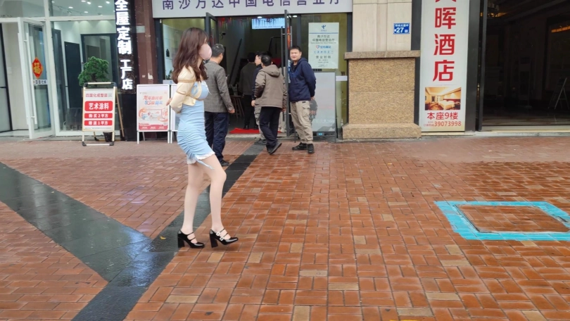 9厘米超高跟鞋 万达商业街真实捆绑外出 购物身材超好,奶茶店小姐姐一脸好奇
