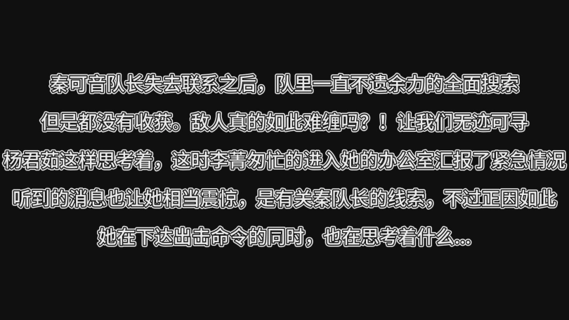 听到的消息也让她相当震惊,是有关秦队长的线索,不过正因如此