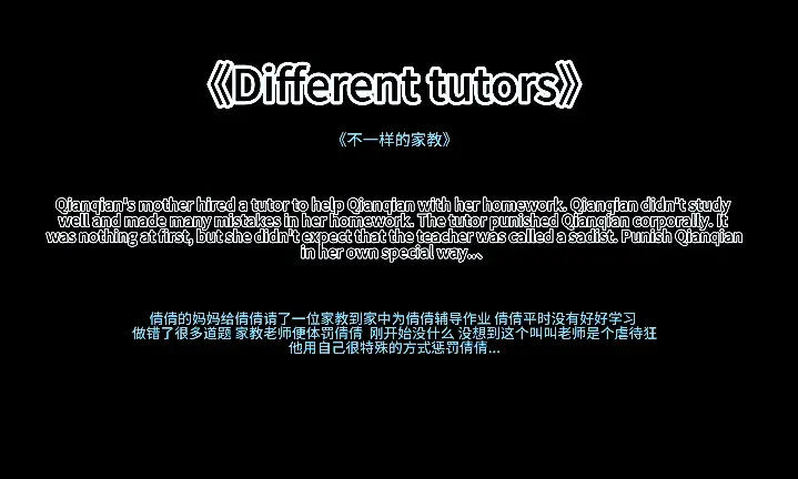 不好好的学习的倩倩一到写作业就犯了难。倩倩的家长给她请了一位家教。家教看倩倩不好好学习便开始了他独有的教育方法。打手心 sp tk 挠痒痒 电击 强制gc。被家教惩罚后倩倩会不会听话好好学习呢?