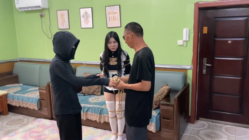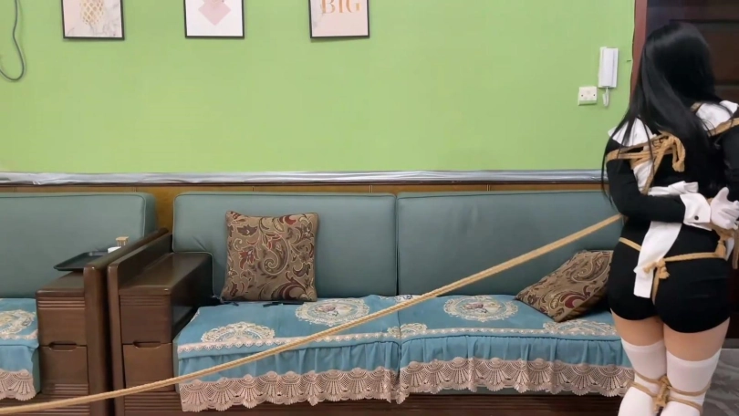 【视频时长】:00:11:26 【文件大小】:677MB 其实一开始是看漫展cos的一套性感女仆装,但没想到这次这么合适,超有趣具体的女仆调教日记,玩法新颖,吴晗美女表演依旧精彩。 美女背着手拿着毛刷在打扫沙发。被男人教训要诱惑一点。美女只能摆出诱惑的动作,摇摆屁股打扫。 多给一些特写 美女只能吃力的打扫。就在这时男人接到电话要离开。就拿了根长绳链接到美女身上。 男人离开,美女一开始还在继续打扫。但突然大门外有送外卖的。美女立马想求救,她扔下毛刷冲向大门,但被绳子拴住怎么都够不到门。模特差一点点就能碰到房门。 美女一阵求救挣扎,终于引起外卖的注意了。外卖进门吓了一跳。 外卖人员坐在沙发抚摸检查了美女身上的绑绳,以为是美女在玩什么sm游戏。美女更急切了,她赶忙解释,但因为堵着嘴巴说的含含糊糊的,外卖根本听不清。 美女拿出边上的杯子递给外卖,又拿出毛刷打扫沙发,她向外卖解释她被强迫在这里给人干活。 而外卖反而更认为她在玩什么主仆游戏,气的美女蹦蹦跳跳的。 最后美女干脆演示给外卖看拴住的绳子,演示她够不到大门逃不出去,外卖总算理解了,帮忙解开了另一端的绳子。就在美女开心的想逃出房间时,却反而外卖反而拽着绳子。根本不让她往前。 就在美女奇怪为什么的时候男人回来了,而外卖则向男人打招呼说老板好。原来他们是一伙的,这次是为了测试女仆的忠心程度。结果女仆一直想着逃跑,测试又失败了。 男人捏着美女的小脸说2次都失败了,她只能被降级为侍寝女仆了,会被安排在床上当主人的玩物。 ![]() ![]() ![]() ![]() ![]() ![]() ![]() ![]() ![]() ![]() ![]() ![]() ![]() ![]() ![]() ![]() ![]() ![]() ![]() ![]() ![]() ![]()