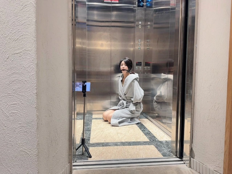 在电梯里面口舌训练有点刺激,两只眼睛盯着楼层一动不敢动,深怕被其他人按了!!!!被一个人关上电梯门挑战15分钟不打开门,命运的齿轮被安排在这15分钟内有没有其他人按电梯了,紧张的心,颤抖的手,求求主人快放我出去。