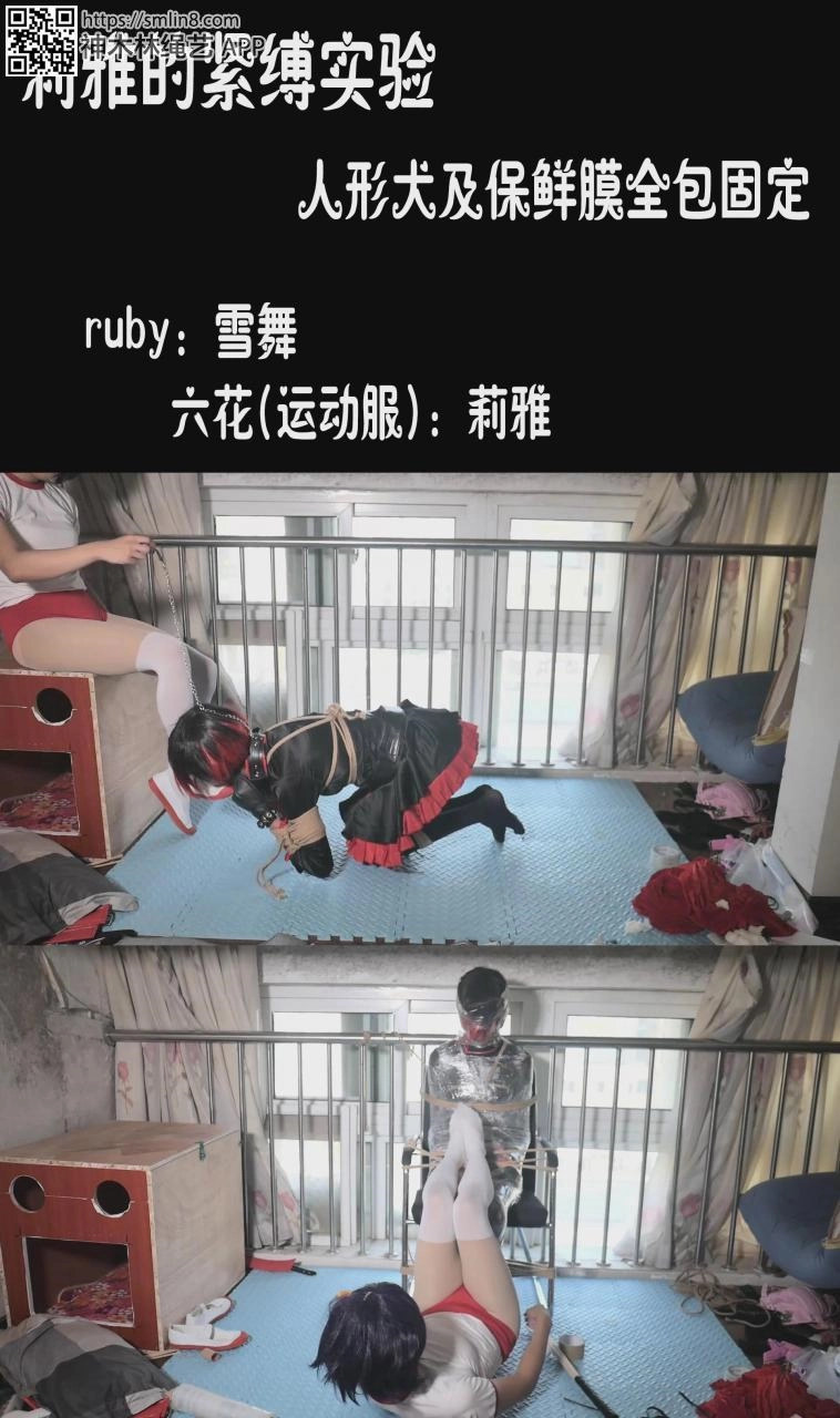 视频简介:把RUBY绑成人形犬调教,觉得不过瘾又拿保鲜膜全包固定在椅子上