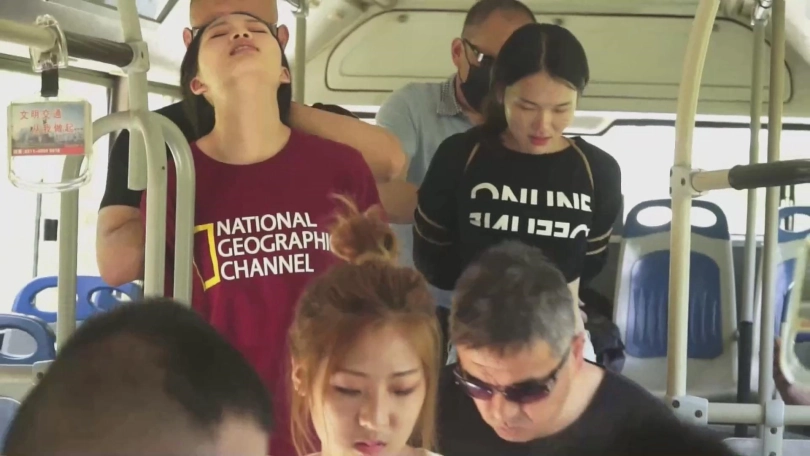 一辆行驶在荒山野岭的公交车上,忽然上来了一伙劫匪,他们虽然口中叫嚣着要打劫,可是似乎对乘客的钱财并不感兴趣,最后还把车上的所有男乘客都赶了下去。