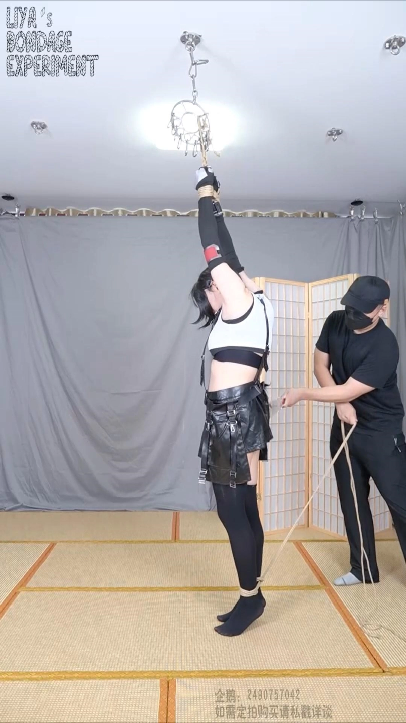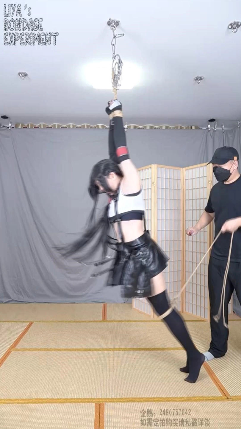 双臂吊起,双脚只得垫起,想要躲避又被拉回,挣扎痛苦的呻吟也呛到了自己,想要去攻击对方又被轻巧的躲开