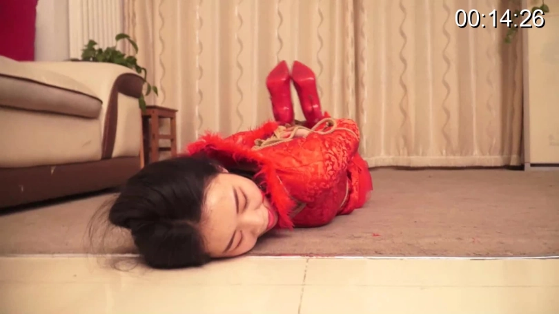 美丽的新娘突然遭到劫匪的入室强制束缚 劫匪KB身穿红色新娘装的美女依然强行KB五花 KB的相当漂亮 挣扎的相当委屈 过了一会 劫匪又让新娘依然换了八色婚纱进行KB 还单腿悬吊 相当不错的紧紧的束缚