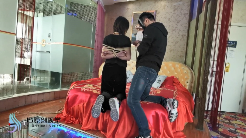 新人凌熙,疫情期间无聊,过来体验捆绑。身体柔韧度还不错,第一次面对镜头就很放得开,绑上之后还挺开心,在镜子面前照来照去,捆绑过程琳洛在一边观看学习(估计是对女绳师感兴趣,想当绳师吧)。