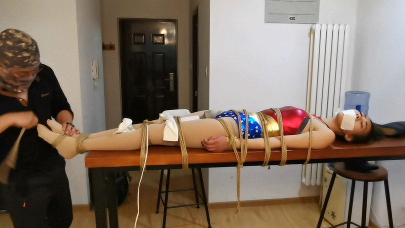 被迷晕后放到长桌上固定捆绑,脱靴,强制闻原味白棉袜,TK刺激呻吟。。。