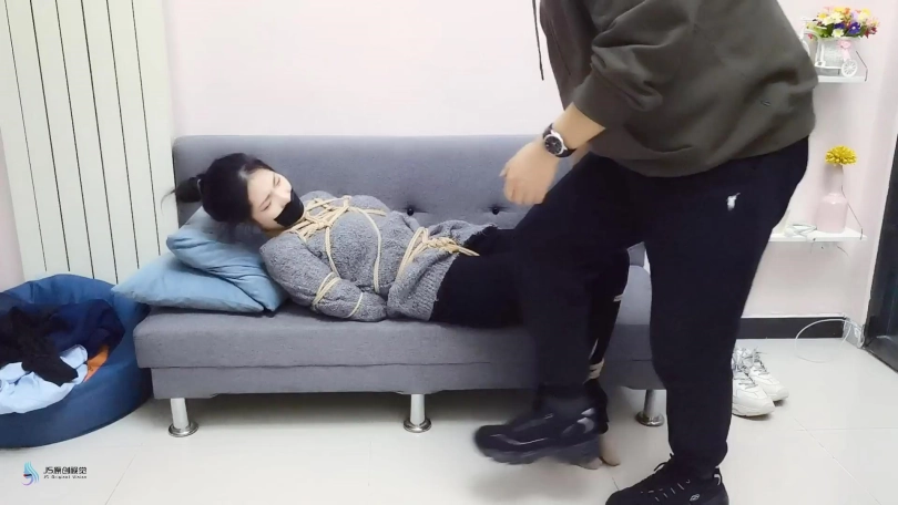 高傲的女上司因为扣工资问题得罪了下属,被下属捆绑玩弄。脱掉女上司的鞋子,玩弄棉袜脚丫。将女上司的棉袜脱掉,塞进她的嘴里羞辱。。。