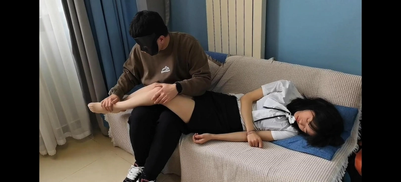 激辣下班刚回到家,就被躲在暗处的面具男从后面偷袭,直接上白手帕捂嘴,不断挣扎翻白眼,最终还是无法逃脱,只能任由他在沙发上摆弄自己!