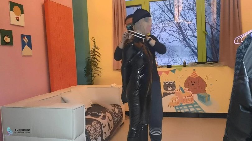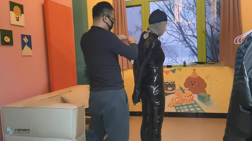 老狼将梦琪从椅子上解开。将她的双手用单手套拘束着,脖子处考上铁链,这样一直让她站着。过了一段时间,老狼将她放在沙发上,解开脚铐,并脱掉她的靴子,不断的玩弄着,挠她的脚底。受不了的梦琪说出了全部底细。最终失去利用价值的她被老狼干掉。。。