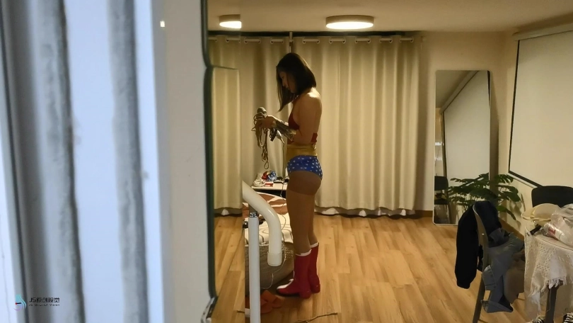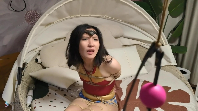 此时女侠被绑成了一个驷马的姿势,TD的强力输出让女侠产生[X_X],这也消耗着女侠的体力,女侠不断的呻吟挣扎着,但她根本挣脱不掉绳子的束缚。而大家最后知道的就是,神奇女侠在这个房间神秘失踪了。。。