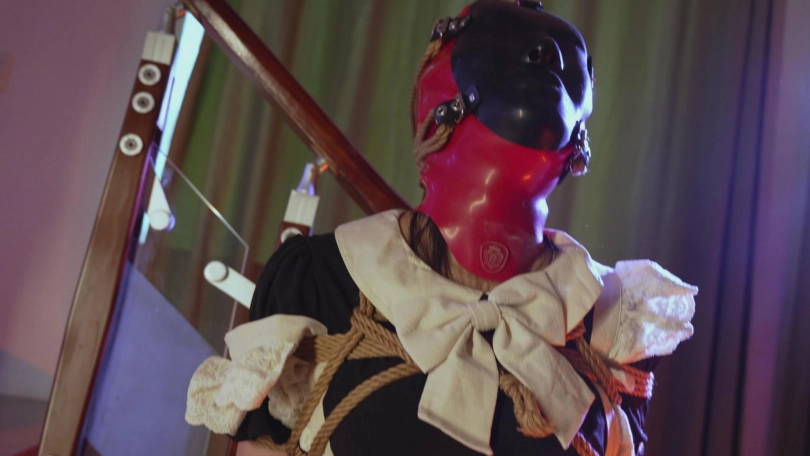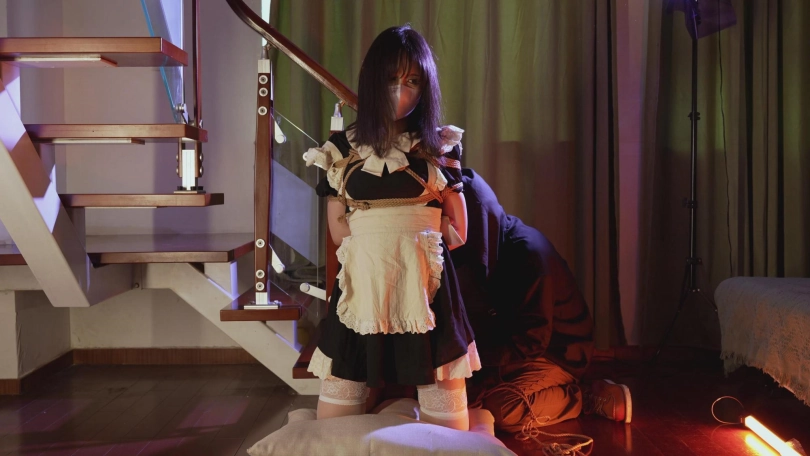 发出微弱的呜咽。最后直接将其后手吊缚,双腿颤颤巍巍,手也被勒成了紫色,最终物化成了女仆玩偶。