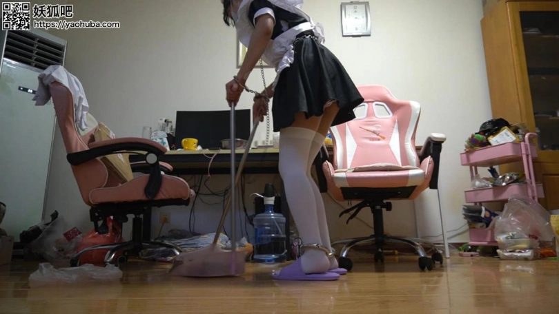 戴着镣铐的女仆被叫醒 起来洗漱后竟然被锁上了贞操带 更被塞进了一个〇蛋来羞辱...