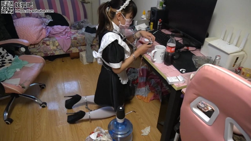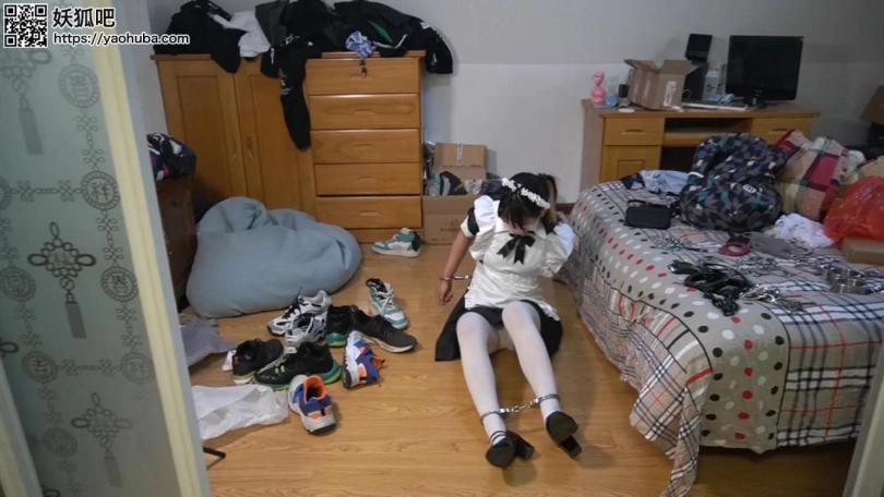 小翼是个家政女仆前来打扫卫生 没想到房主却是个...被强行铐起来后打扫卫生 由于工作不卖力还被丝袜淋水惩罚 在换上提前准备好的丝袜以后又被锁了起来还被强行留宿