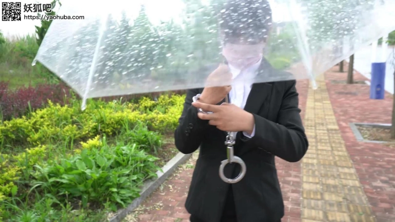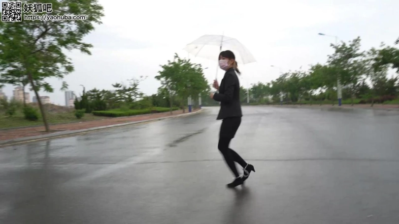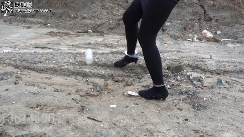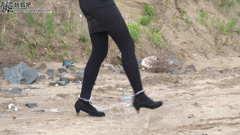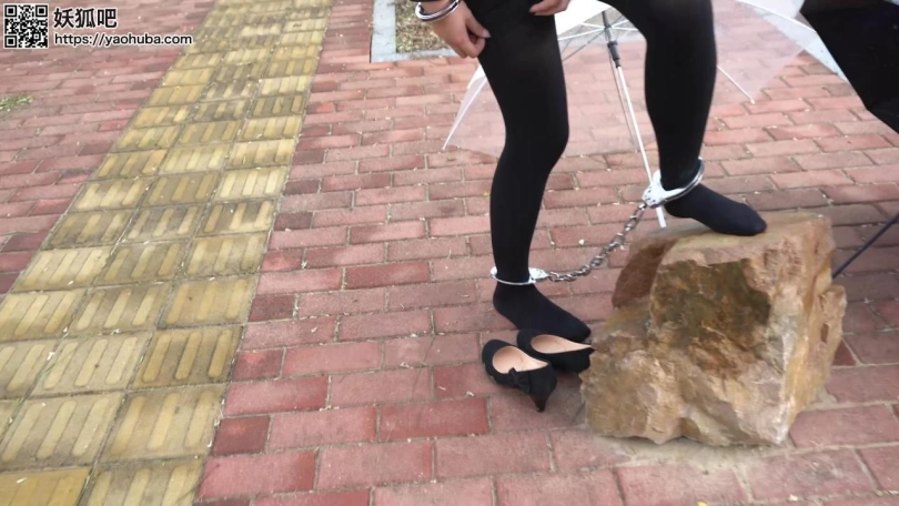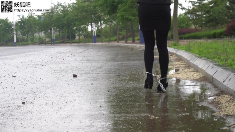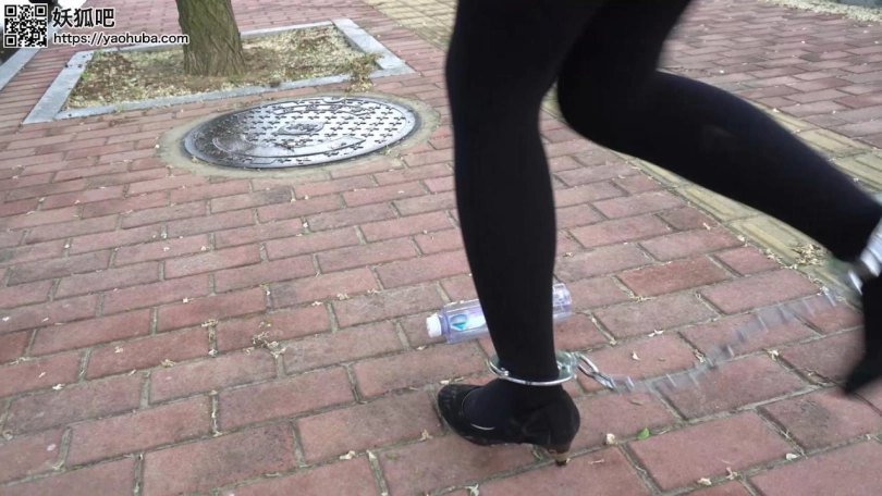 OL装 黑丝 脚铐 踢瓶子玩 虽然是下雨天但是这边马路上路过的车还是不少 不然就能在路中间玩了