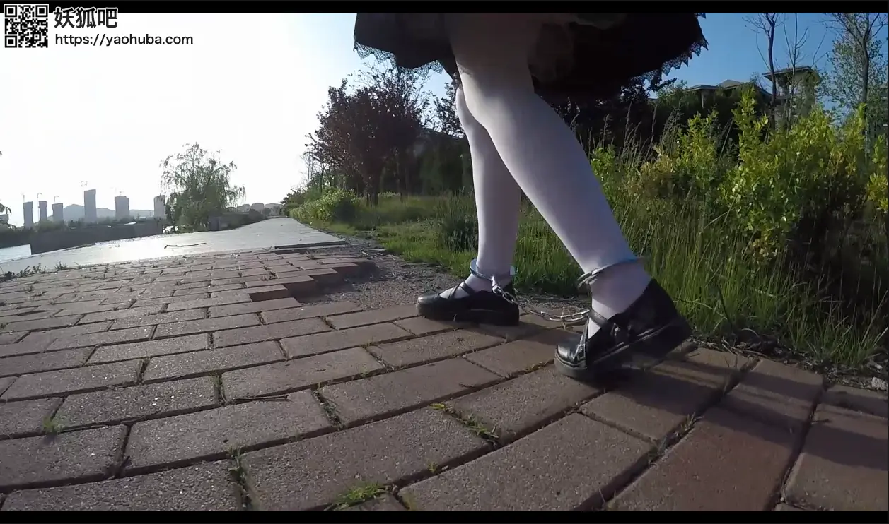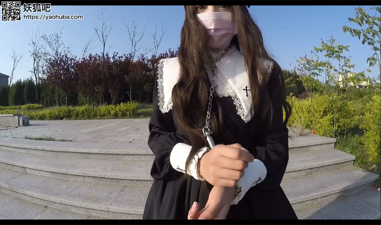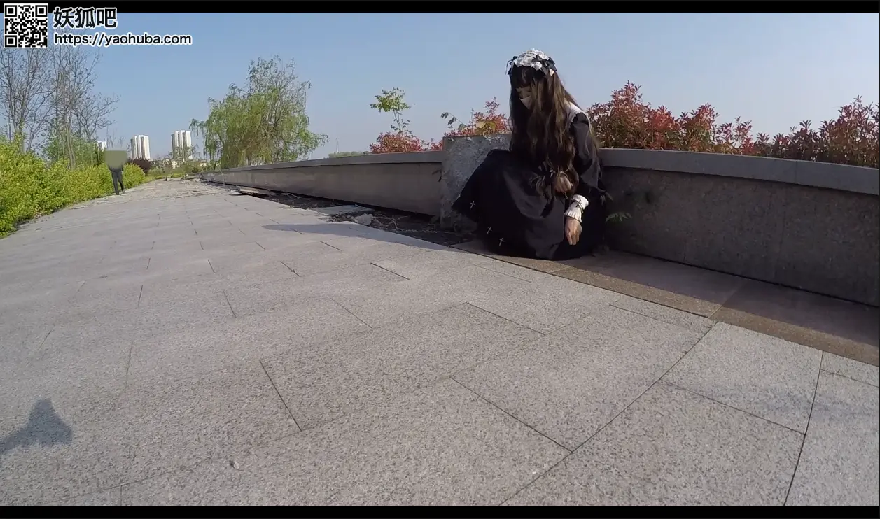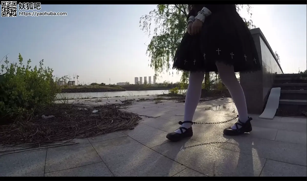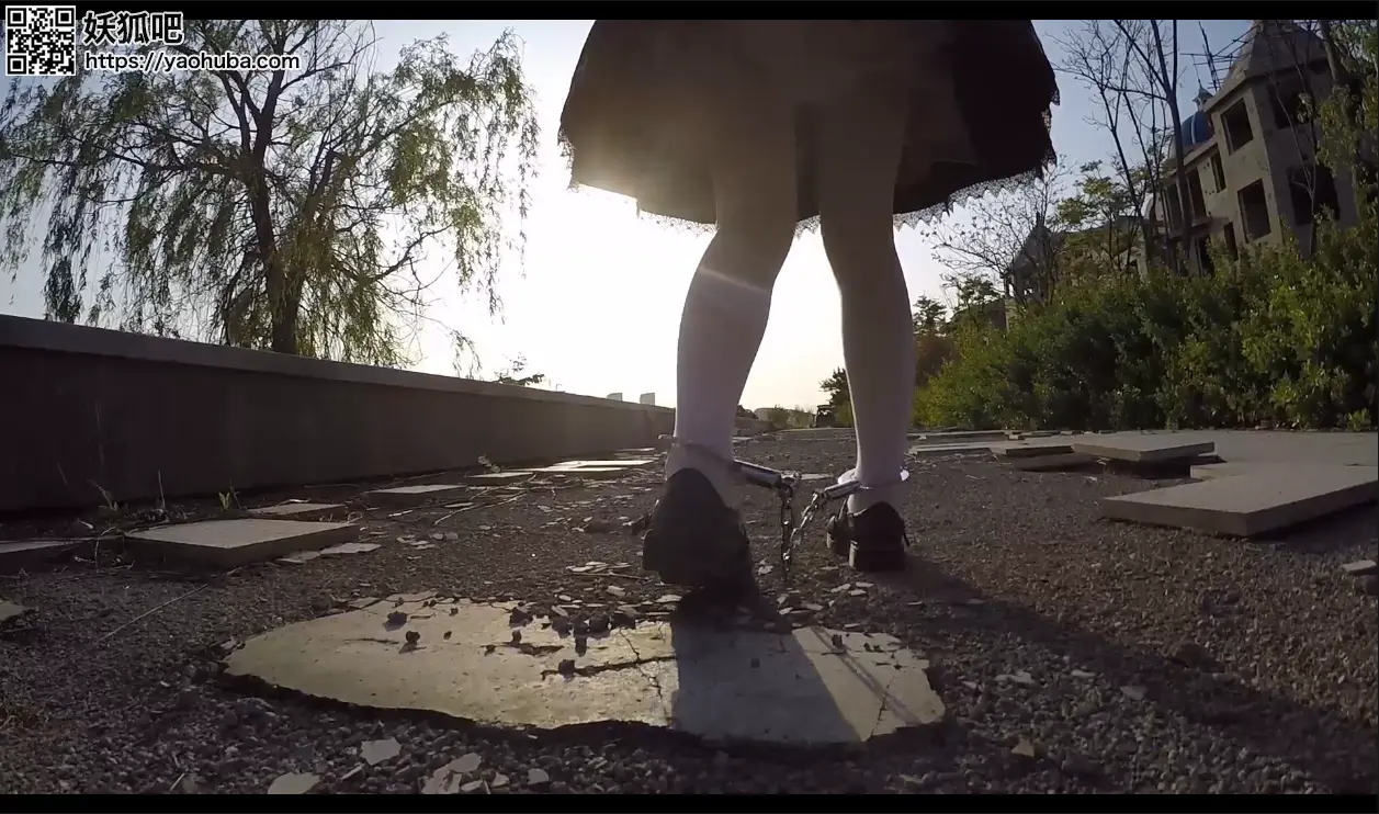 跑了一半前方突然出现了路人 把模特吓了一跳 还好裙子可以遮住脚镣看不到