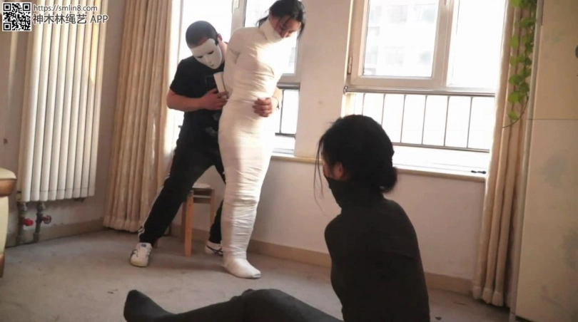 【文件大小】:588MB 上回说到2位美女被坏人迷晕并被捆绑成木乃伊,挣扎不能。 这是男人回来了,不知道他在搞些什么,他好像在客厅挂上了什么东西。 男人挂完东西就走了,这时2位美女才发现原来男人把一个小刀挂到客厅里。2个美女二话不说赶紧过来够刀子。 白色木乃伊美女根本够不到小刀,个子比较高的黑色美女赶紧想帮忙,但她平衡不太好,在费劲力气扭动半天之后才得以站起来。 让她们气愤的时好像是男人故意设计戏弄她们一样,她们用尽各种办法都不能把绳子解开。 漫长的时间过去,2位可怜的美女挣扎的满头大汗,小脸憋的通红。 2位美女几乎绝望的认定自己无法够到近在眼前的小刀,这快把她们气死了。 经过费力艰难的挣扎,白色木乃伊美女终于把腰部的绷带挣扎松了。 但她们发现自己居然白开心了一场,就算外面的绷带解开了,但她的手臂连同手掌也都被绷带包裹,握拳的小手根本什么都做不了,她根本不能帮她和同伴身上的拘束解开,甚至连小刀都够不到,也就是说她好不容易解开拘束,但却什么都做不到,急的可怜的美女呜呜直叫。 果然,没多久,男人会回来了,把她的手臂又捆绑了回去。 但这次男人没有停手,他好像还想加固捆绑的样子。。。。 ![]() ![]() ![]() ![]() ![]() ![]() ![]() ![]() ![]() ![]() ![]() ![]() ![]() ![]() ![]() ![]() ![]() ![]() ![]() ![]() ![]() ![]()
