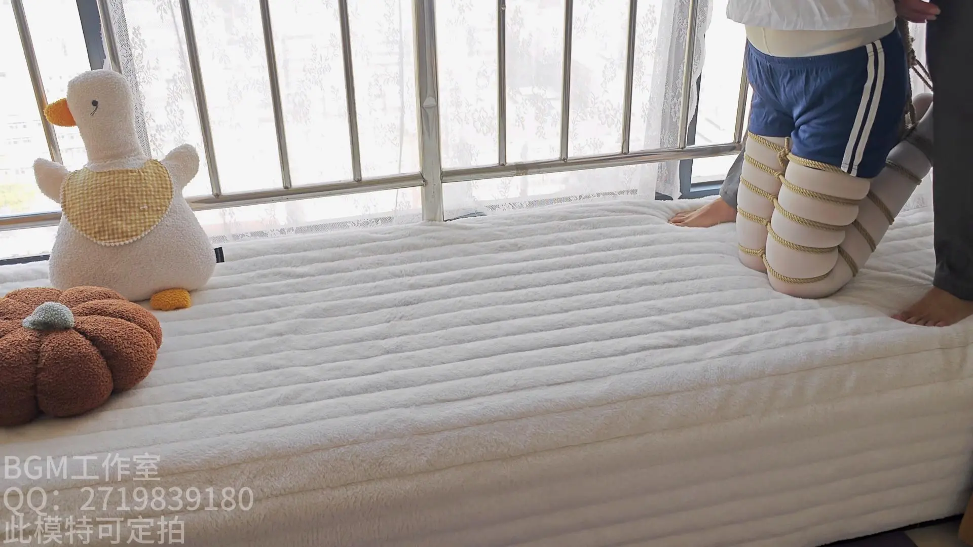 新找的模特,感觉性格特别好,满屏的白丝大长腿。梦梦挺怕痒的,手刚碰到脚心就叫,有机会可以拍个挠脚心的视频,记得关注哦。视频元素有:绑腿,驷马搬运,白丝脚底特写,挠脚心,驷马立。