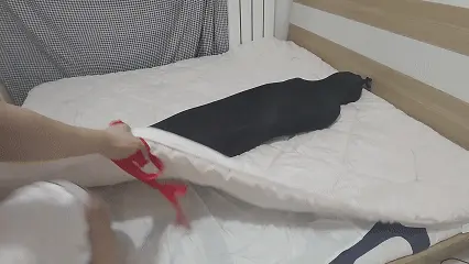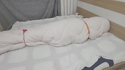 睡醒的小学弟发现自己莫名其妙的在睡袋中,才想起来因为打赌输了,被学姐搞晕,之后装到了睡袋里边,学姐用了4层超级紧的丝袜睡袋,把学弟包成了一个只会蠕动的人形抱枕,不满意的学姐最后还加上了超级厚的棉被,让学弟在里边反省!