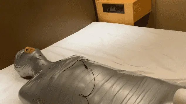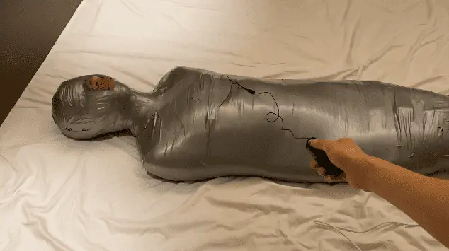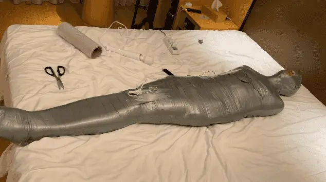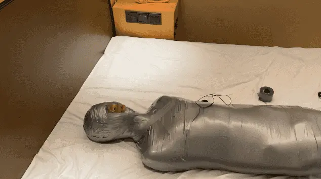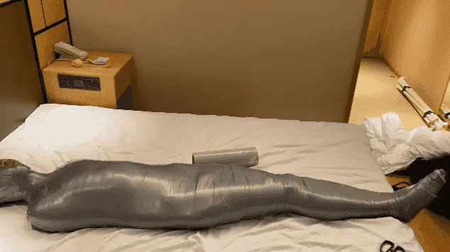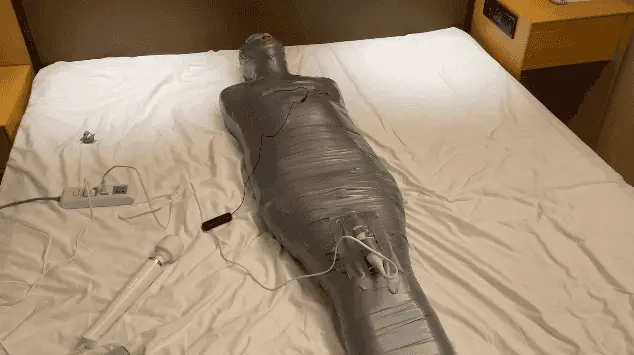 小m体验胶带木乃伊全包 先是一层保鲜膜全包 然后银色胶带层层把他包裹缠绕 全身没有一点缝隙只留个嘴巴在外面呼吸 小[不可描述]固定在乳T上震动刺激 丁丁被埋入式的AV棒子抵住无限震动榨精