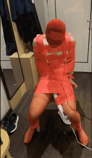 cd小m穿上了塑身衣 红丝袜 被绳子拘束衣真空床 各种拘束折磨了一下午 (期间一直没有让小M得到释放) 最后用胶带把手脚大腿全部固定死一动也不能动 AV棒子用胶带绑在大腿上 震动头顶着小M的丁丁 乳T上贴着电击贴片 口球堵嘴 眼罩剥夺视力 红色丝袜吧头也套上固定在椅子上 小M在绝望中经历了将近30分钟的高强度榨汁 (因为剪辑原因 视频中榨汁时间大概为4分钟 都是最精彩的的部分 m被弄得死去活来)