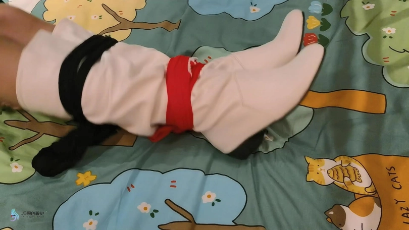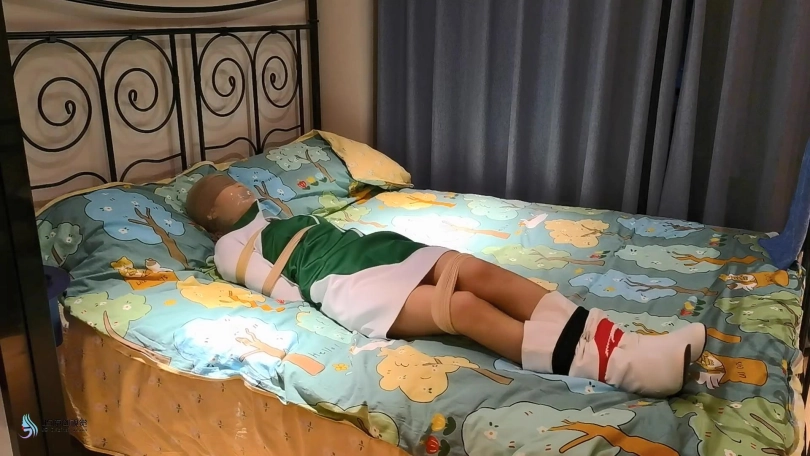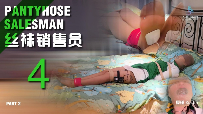 丝袜推销员上门推销丝袜,对方见夏瑾很漂亮见色起意,以试下丝袜弹性为由让她把自己的脚绑上,又绑住了她的手。这是客户原形必露,开始对夏瑾动手动脚。夏瑾想离开却被对方用丝袜塞进嘴里,用胶带缠绕,防止她吐出来。用丝袜套在她头上,蒙住她的眼睛,用多条丝袜对夏瑾加固捆绑。男人将她抱起放在床上,脱下她的靴子,贪婪亲吻她的丝袜美足,并用郊狼电击片贴在她的大腿内侧和脚底折磨着她。