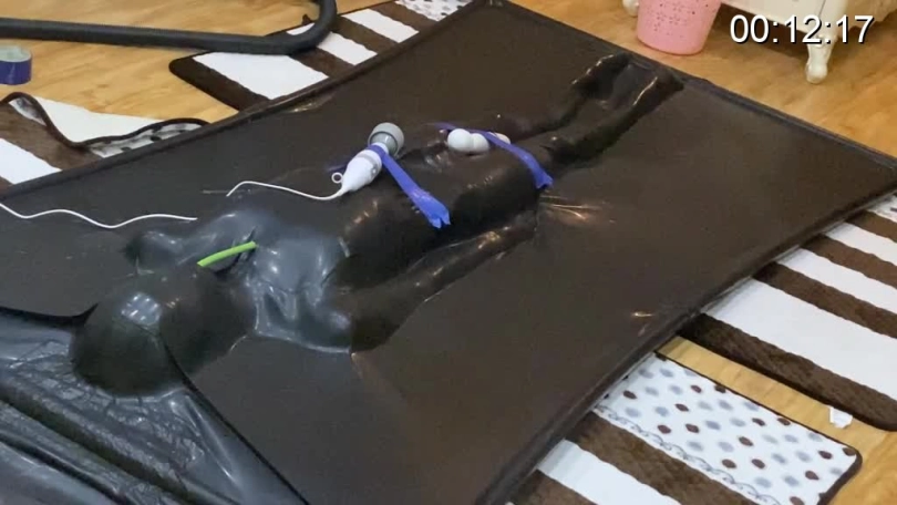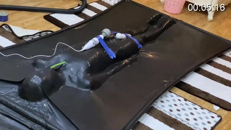 全方位拘束各种姿势挣扎 两个av棒固定 加上电乳夹子 想动动不了 想躲躲不开 在乳胶的全方位包裹下无限缴枪。
