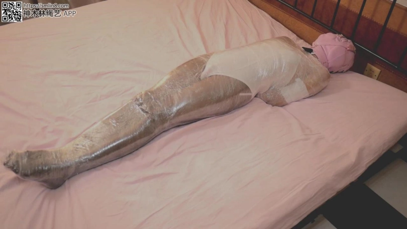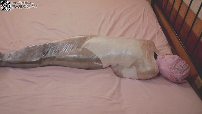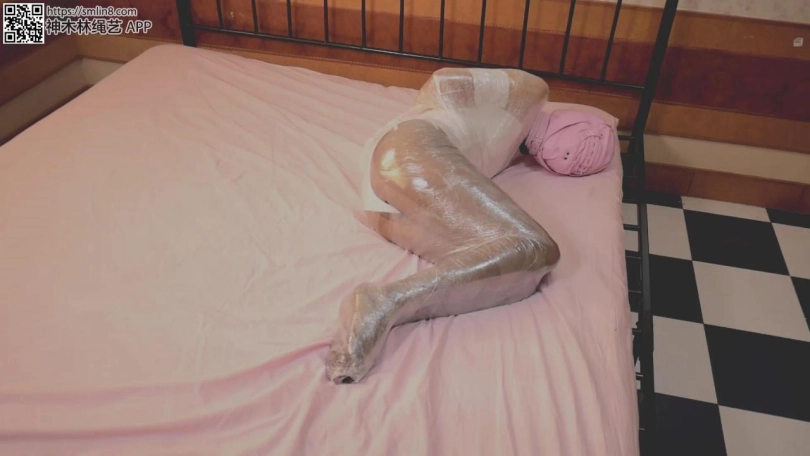 上半身被保鲜膜完全包裹起来的兔女郎在床上,被男子随意玩弄着下身,玩弄到渐渐失去意识之后,又将整个兔女郎装上玩具包了起来,兔女郎在快感和中慢慢昏迷