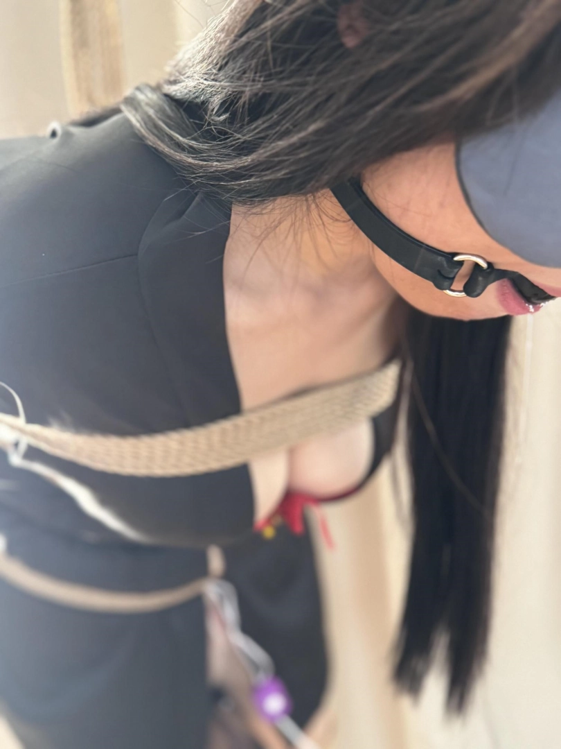 昨天在床上蹂躏过足瘾后又把她吊到阳台zdb跟td双重折磨下自己享受