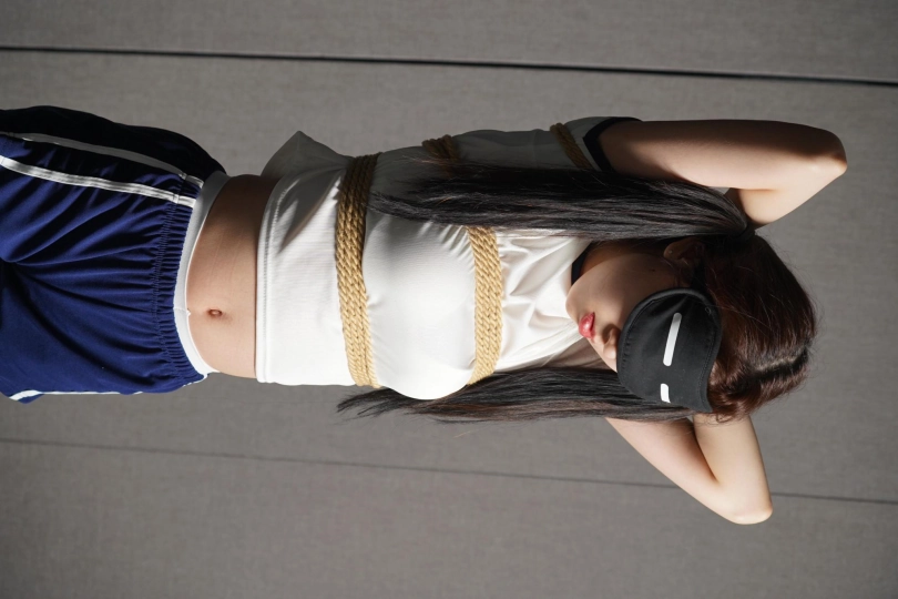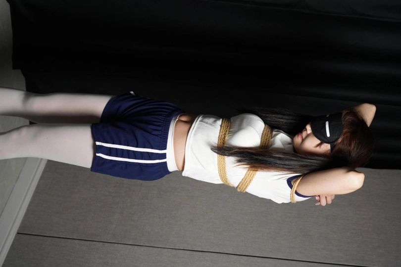 妹妹听话的戴上了眼罩,灰太狼用绳子束缚住了她的胸部,还没有反应过来时双手也被举过头顶绑住了,盘腿坐下后双腿也被紧缚,紧接着被戴上了口塞,只能支支吾吾的哼叫,紧接着又是海龟缚,极限的拉紧让妹妹倒在一边,挣扎着,叫喊着,这时灰太郎的养猪手又不停的在她身上游走,挠痒痒等一系列工具让她叫苦连天,本以为这就结束了,没想到又被膝盖着地,手腕吊起一顿折磨