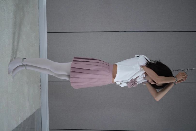 丹丹误打误撞来到绳艺挑战游戏,慌乱下脖子上多出了个项圈,还没等弄明白就被吊起,手脚并拷,脖子也只能仰着,脚尖踮着解手中的模具,本以为解开就可以结束,没想到还有下一环节游戏,虽然骂骂咧咧,但手不能停,几番折腾也没有打开。惩罚时手被拷在背后用链子固定在椅子上,各种道具挨个尝试,只听见一片“嗯嗯 啊啊 哈哈”声,已经累瘫的七七求灰太狼放过她。颜值与身材并存!