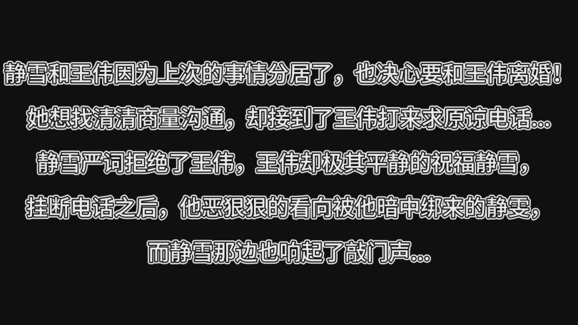 静雪和王伟因为上次的事情分居了,也决心要和王伟离婚!