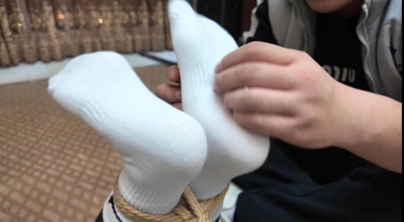 【视频时长】:00:38:11 【文件大小】:2901MB 上集说到小偷用刀威胁女主说出了密码,然后又把女主捆绑得更加结实了。视频开头接上集,女主上半身已被直臂绑缚起来(手肘,手腕都被捆绑住),下半身依然绑着股绳,大腿根部,膝盖,脚腕都被绳子紧紧绑缚着,当然还少不了驷马倒攒蹄。看着被制服的美女,小偷真是蠢蠢欲动,尽是坏心思,只见小偷用一双白棉袜塞入女主樱桃小嘴中,奈何樱桃小嘴太小,小偷只能退而求其次,将一只白棉袜塞入女主口中,将白棉袜塞入女主口中后,小偷又用五张黑色布基胶带封住女主嘴巴,捏捏她的肚子后,女主发出呜呜呜的声音,小偷觉得她还能叫喊不放心,又用白色绷带将女主嘴巴缠绕封上,这样,女主彻底被剥夺了说话的权利,也无法挣脱嘴巴的束缚,手脚又被结结实实的捆绑,只能任由小偷摆布玩弄了,小偷也不客气,对女主上下其手,挠脚心,挠腰部,摸胸都使出来了,女主就算再难受也只能发出呜呜呜的声音和露出楚楚可怜的眼神。玩弄了一会的小偷也是腻了,抓住女主的头发让她抬头再贴近她的耳边后说到:我要出去取钱,你给我老实呆着,要是我发现密码不对,我回来有你好果子吃,听到没有?女主呜呜呜含糊不清回答:密码真的,不敢骗你。说罢,小偷起身踹了女主一脚随后离开,女主在原地挣扎并发出呜呜呜声音,镜头多角度,多特写把女主挣扎真实的记录下来。女主也是费力挣扎扭动身子并发出呜呜呜声音,最后也是徒劳无功,默默低下了头,等待着命运安排。 ![]() ![]() ![]() ![]() ![]() ![]() ![]()