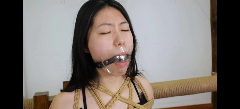 青春靓丽的清岚穿着性感的皮衣皮裙,修长的大腿一览无余,被银色金属口球和黑色马具口球轮流堵嘴大量口水流出,还有口罩和胶带封住嘴巴积累口水,挣扎和呻吟非常诱人,清岚现已退圈