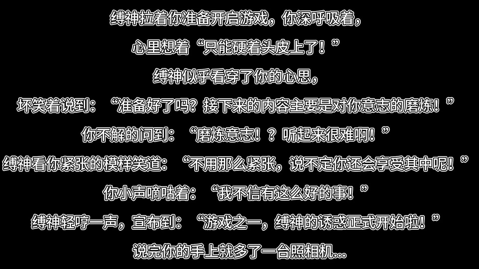 缚神拉着你准备开启游戏,你深呼吸着,