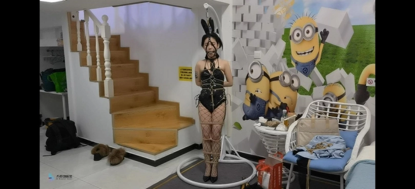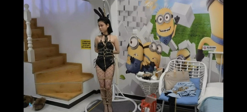 小美女夏瑾身穿兔女郎套装渔网袜和黑色高跟鞋,性感又不失青春靓丽,还有很体现个性的唇钉,站立龟甲缚并腿缚后滴入柠檬汁后金属马具口球堵嘴流口水,还有透明胶带和银色胶带封嘴,最后柠檬和白色口球口水不断的流出,模特也非常可爱,可惜模特现已退圈