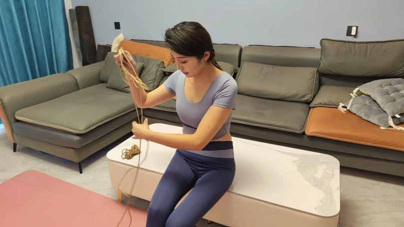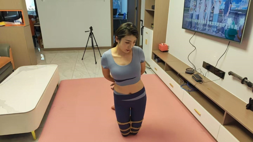 佳佳在家练完瑜伽,练习自缚,最后被老公后手观音捆绑,驷马放置,佳佳心真大,后手观音驷马能睡着,拍完临机采访了一段