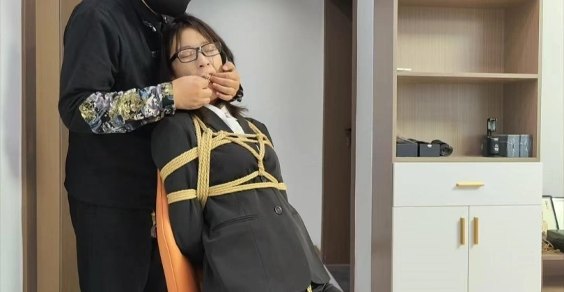 晓倩老师被押解,全身捆绑,丝袜堵嘴,躺在床上挣扎