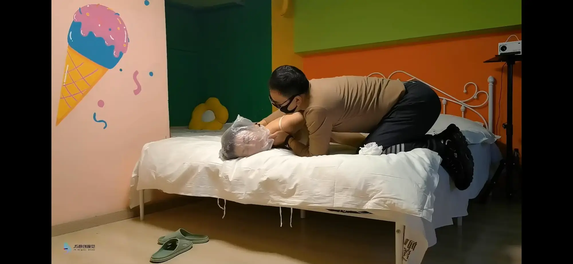 艾菲饰演的空姐被控制,歹徒搜刮完财物后觉得艾菲留活口会惹麻烦,于是拿着一个塑料袋走向艾菲........