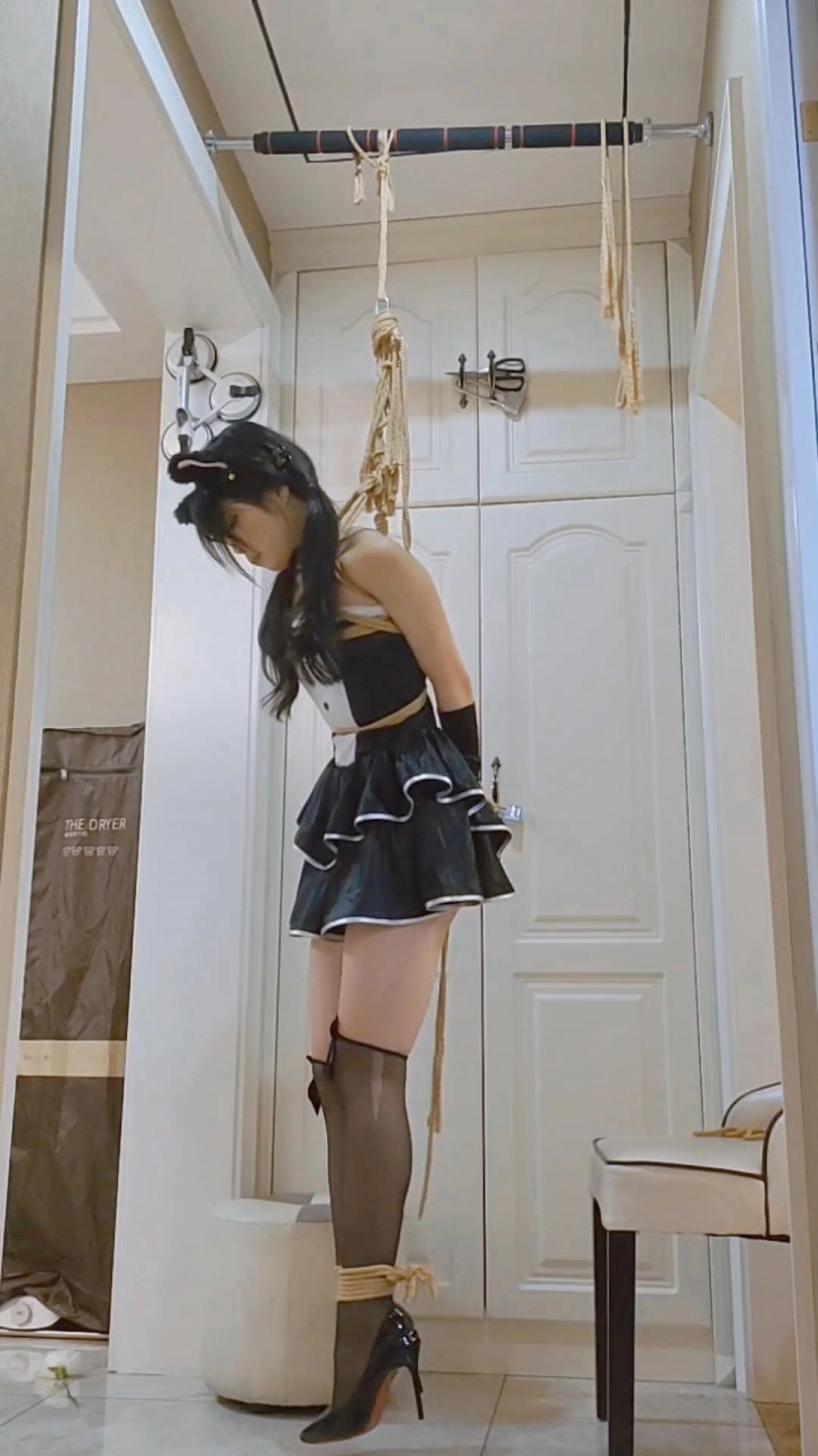 最极限的,后手驷马吊,单根声音直接拉上天,痛苦程度就不用多说了,m的承受能力直接拉爆,在天上不停的转圈圈被转到低血糖,一只呜呜呜的大喊我快死了!!!甚至喊出我在也不让你绑我了的口号,多次多种天上驷马吊缚,再加上强高,最后放下来继续前后交替突突,突完后面洗都没洗继续突前面,前面过后又后面,惨不忍睹!