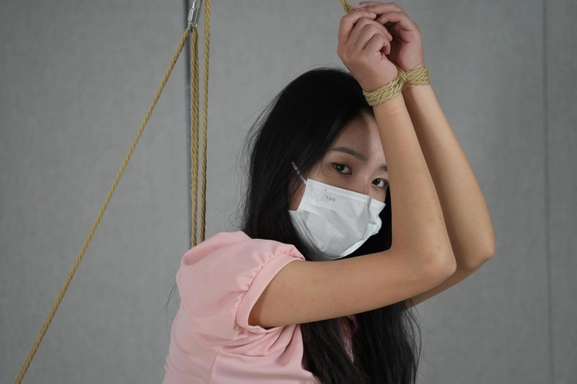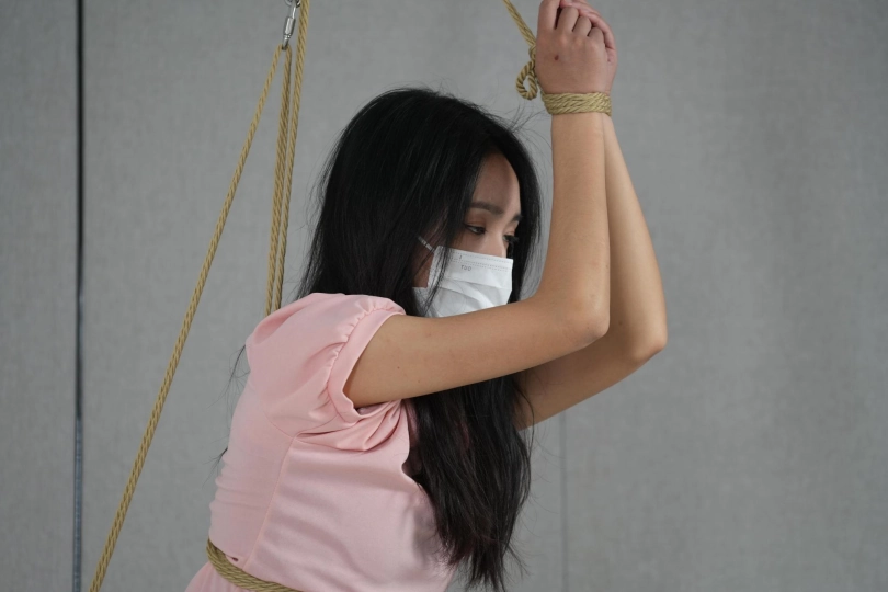 【视频时长】:00:17:04 【文件大小】:1016MB 沫沫无意中看到绳艺游戏捆绑,根据手机上的地址到达地点后有些后悔,打算打车离开时身后有个陌生人拿出绳子对她进行一系列的捆绑并告诉她要陪他完成挑战才能解开绳子;5张卡片,30秒钟记住图片中的细节,每张卡片中抽取两个问题进行提问,回答正确视为通过,回答错误接受惩罚。游戏开始了,沫沫脚下的三块砖都被抽走了,她只能踮着脚尖,胳膊上的绳子也越发紧了,胸下面的绳子格外紧,让她难受不已,此刻的她已经感觉手麻了,但游戏还在继续,双手吊缚+单腿吊缚的绑法将沫沫的身姿衬托的更为迷人,侧脸的颜值简直让人心痒痒。虽然偶尔怜惜但游戏输了还是要惩罚的! ![]() ![]() ![]() ![]() ![]() ![]() ![]() ![]() ![]() ![]() ![]() ![]() ![]() ![]() ![]() ![]()