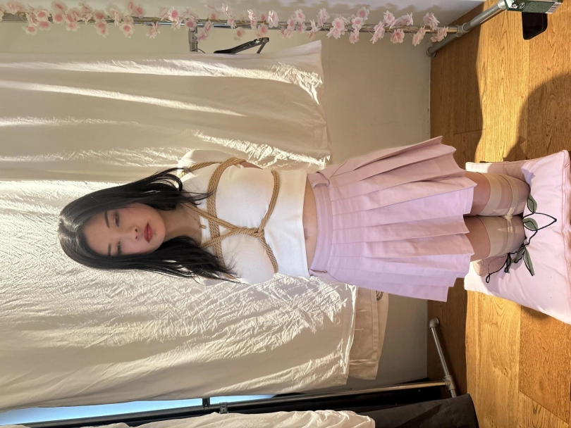 兼职模特舒宁接上一部体验,肉丝+口球+胶带封嘴+驷马+蟹缚+tk+胶带捆绑+挣脱,有足部特写。