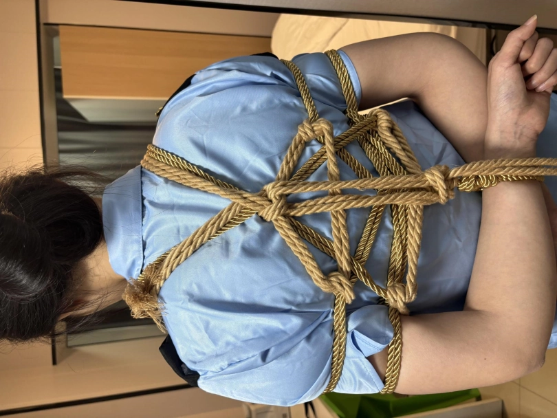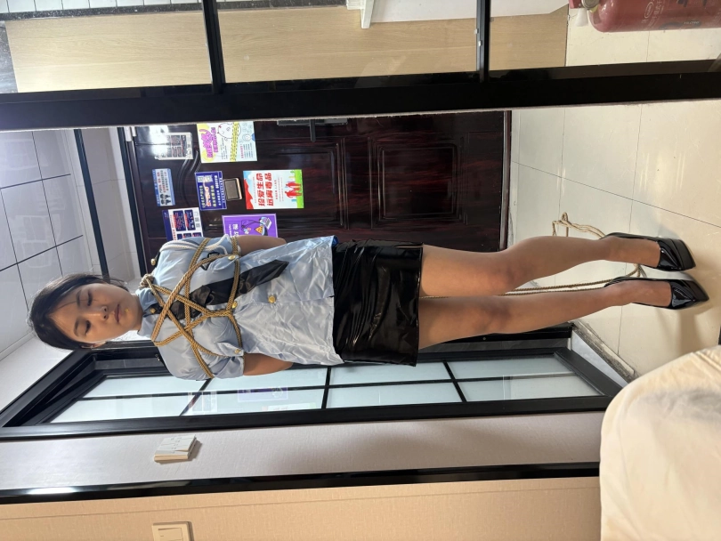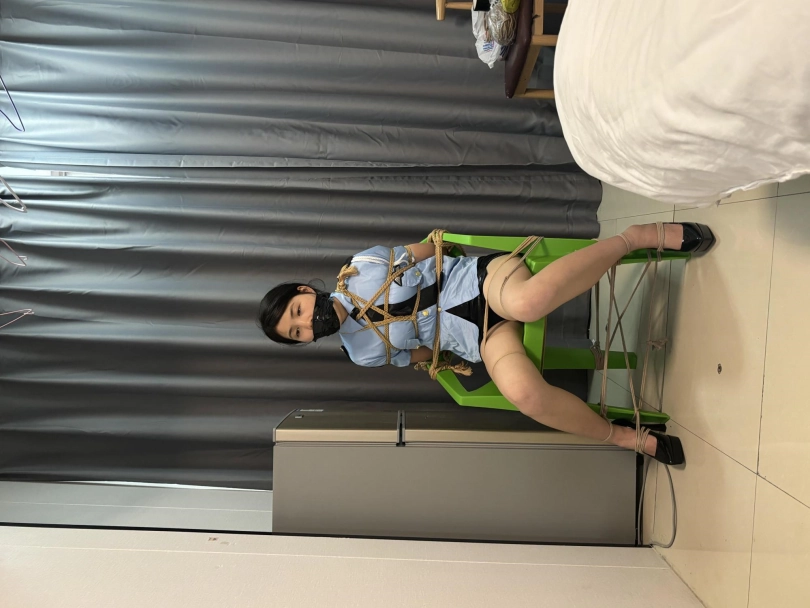 【视频时长】:00:49:29 【文件大小】:1804MB 剧本:雨柔前往交换人质遇险 模特:雨柔 服装:搜查官制服(天蓝色搜查官衬衣+黑色短裙+肉色丝袜+黑色红底高跟鞋) 剧情: 第一幕 雨柔敲门进入,说:“我是搜查官,按照上级要求来交换人质。”房间里的歹徒让雨柔举起双手往里走,雨柔照办、走进客厅,说:“你对我做什么都行,担心的话可以把我的手脚都捆住,但请不要伤害人质。”于是房间的主人让雨柔脱下丝袜给他;雨柔不解,但还是照办,最后重新穿上高跟鞋。 第二幕 镜头切换,雨柔被驷马捆住,眼睛上戴了眼罩,嘴巴里也被塞了口球,不停挣扎。 不一会儿,雨柔的手机响了,歹徒摘下了雨柔嘴里的口球、接通电话让她说话。雨柔:“局长,我没事,我现在在...”歹徒一听雨柔要透漏地点,马上用之前脱下来的丝袜塞进了她的嘴巴,然后挂掉了电话。 第三幕 镜头切换,雨柔上半身椅子缚,双手手腕交叉在椅背后面被绑住,手臂上有几条绳子也和椅背绑在了一起、并且胸部也来了个胸缚;下半身开腿缚,两个脚踝、两个膝盖上下处都分别被绑在两个椅子腿上,同时腿上的丝袜也没了、这里光腿,但是高跟鞋还在,嘴巴外面被缠了好几圈黑色胶带;雨柔嘴里呜呜叫着,可是无奈自己实在挣脱不开,歹徒便留她一个人在房间里。 ![]() ![]() ![]() ![]() ![]() ![]()