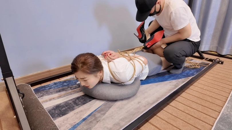 今天给佳佳来个她最擅长的后手观音,捆好之后她没有想到还要驷马,用绳子吊着控制,接下来在用绳子勒上嘴,让她感受一下绳子勒嘴的感觉