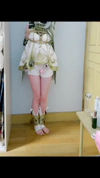 纳西妲cos服,也算是第一次穿着cos服被绑了,这次还戴了TD,已经很久没有绑着戴TD挣扎了,这次总有一种莫名的感觉…而且该死的闺蜜总把TD的档开最大,美名其曰要录进去TD的声音…因此这次与其说是挣扎,不如说是在扭来扭去尽量减小TD的影响,然后因为不太熟悉这身cos服的原因,纳西妲的cos是有一双精灵耳朵的,但挣扎的过程中精灵耳朵老是掉掉,虽然尝试利用眼罩的带子进行固定,但只有左耳能比较好的固定住……