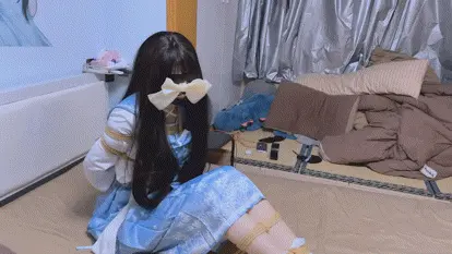 这几天真的被捆了好几次,这次是另一套的JK长蓝裙,闺蜜还是一如即往地绑得很紧,虽然不至于难受,但想要挣脱开还是不太现实,而且我看是长裙,以为就不用绑大腿了(反正视频里也看不到…),结果闺蜜还是很认真地把大腿捆了两道……一开始看我在床上挣扎还不够,竟然还用手铐把我铐在桌子旁边,然后把钥匙丢在旁边,拜托我眼睛被蒙着根本摸不到钥匙TAT,尝试了好多次都以失败告终,虽然最后还是把钥匙给了困困,但解开手铐到底有什么意义啊,绳子还绑着呢……