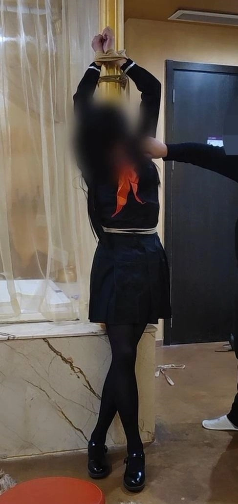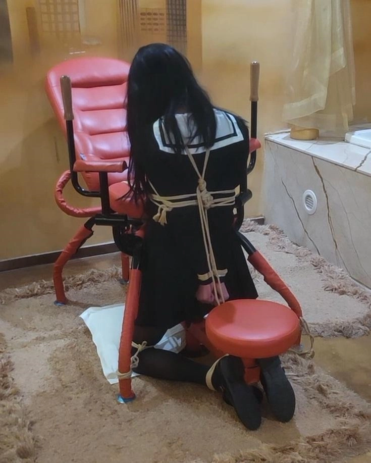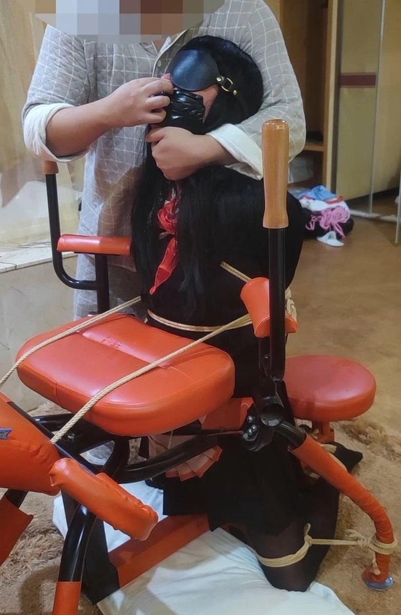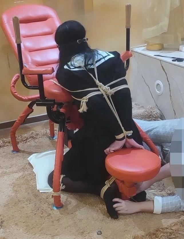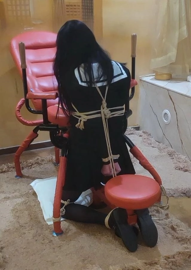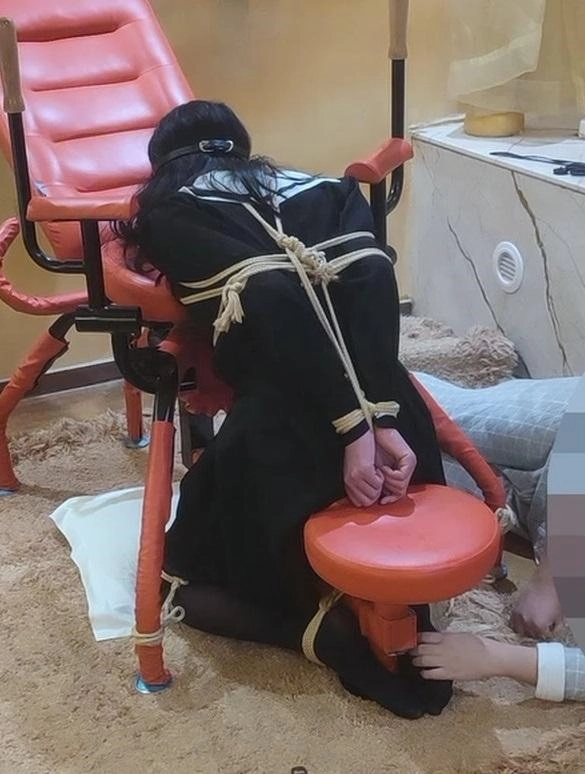 第三段也是跪缚固定,蒙眼堵嘴后持续挠脚底