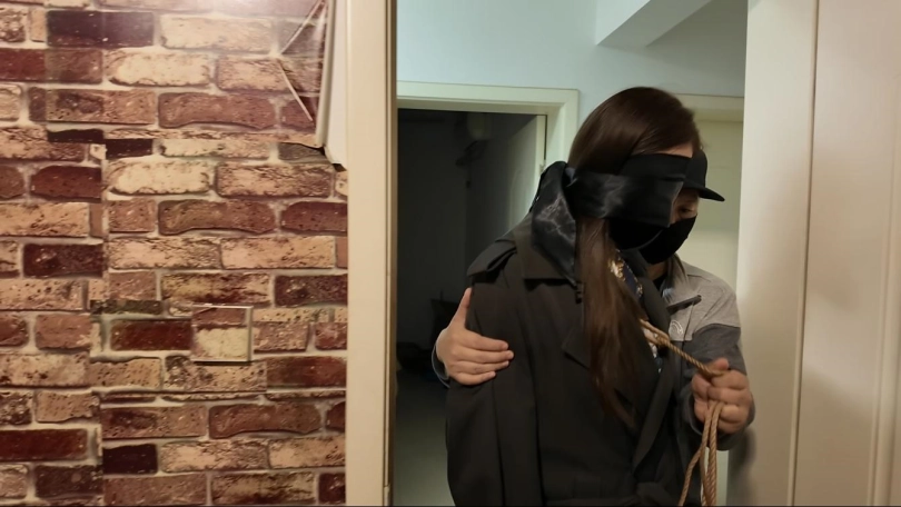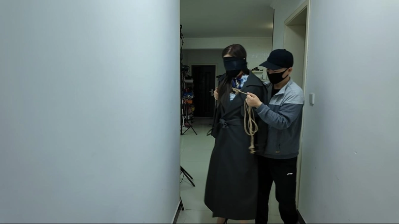空姐佳佳在家被两名歹徒绑架,绑上股绳,嘴上粘上胶带,带上口罩,手捆绑到后面,给她穿上大衣,从电梯到地下停车场,一路向西,经过半个小时的车程,带到一个房间里面,两个人又强行堵嘴,把她捆绑到柱子上,双腿分开固定绑起来,一个人在后面,一个在前面疯狂折磨....最后把她折磨的双腿不停的抖动