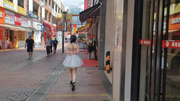 长颜草定拍,模特穿9cm高跟鞋,吊带露背蓬蓬短裙,双手被捆绑,绳子完全外露无遮挡,大白天在商场逛街,挑战被绑着在早餐摊位、便利店购物,路口等候红绿灯,穿越斑马线,路人回头率百分百。